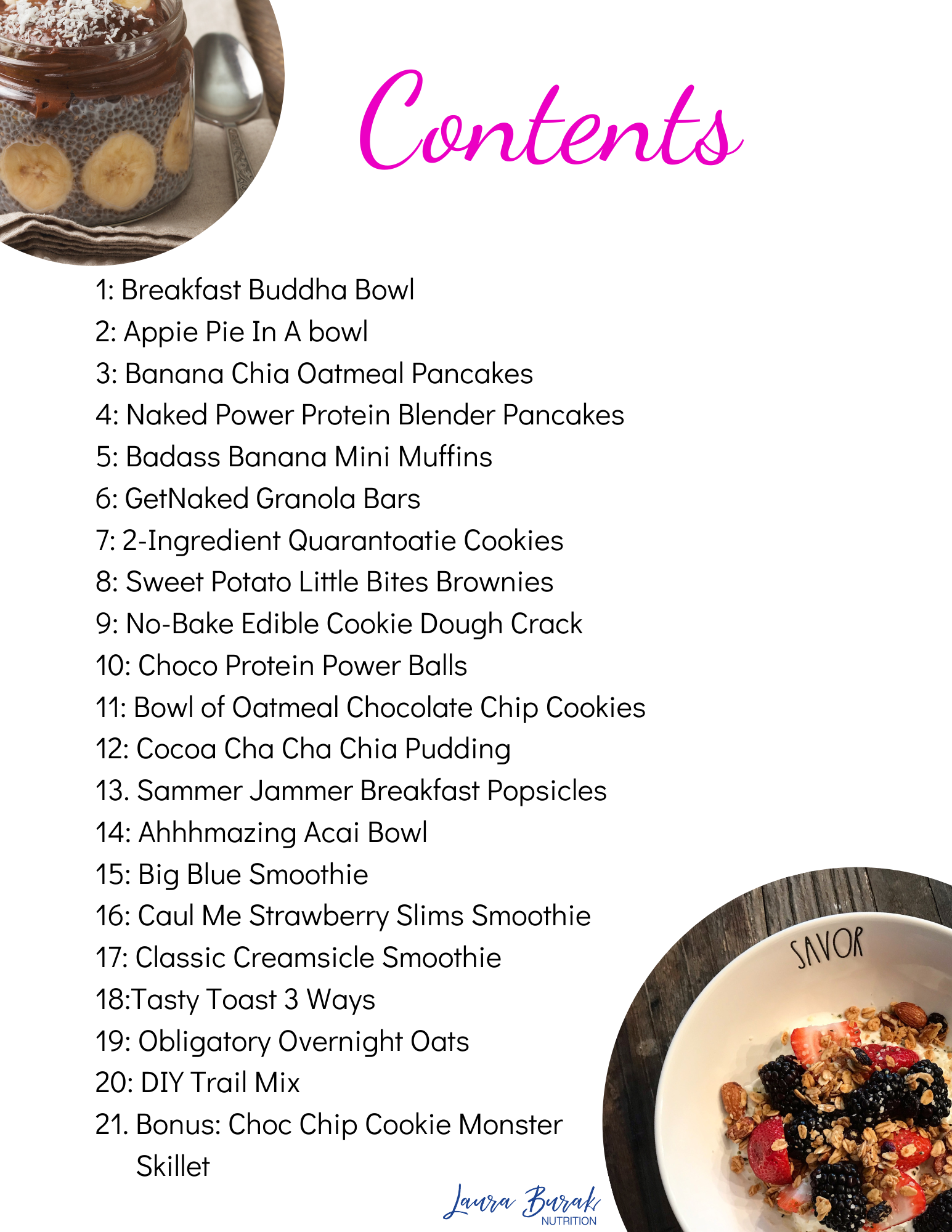 As you know, food is at the center of my love for nutrition and I can't wait for you to enjoy my current collection of downloadable recipe e-books for tons of quick and easy meals, snacks, sides, and treats.